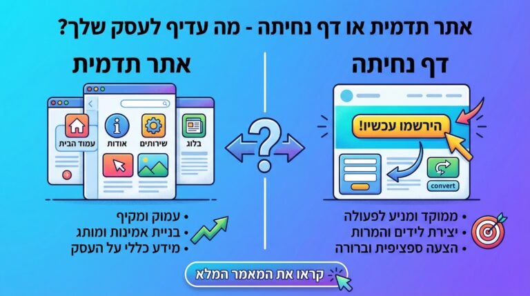 אחת ההתלבטויות הנפוצות ביותר בקרב בעלי עסקים היא האם לבנות אתר תדמית מלא או להתחיל דווקא מדף נחיתה.…